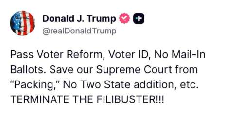 JUST IN – Trump “Pass Voter Reform, Voter ID, No Mail-In Ballots.” disclosetv