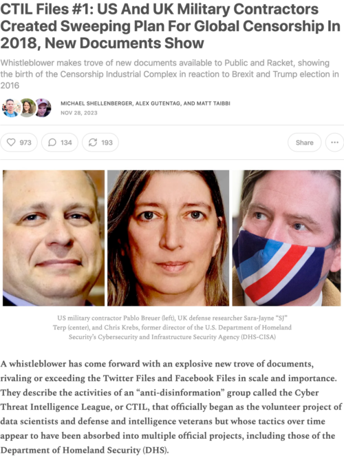 Liberal journalists Matt Taibbi and Michael Shellenberger have recently released new allegations from a whistleblower regarding the origins of the censorship-industrial complex in a story they’re calling the CTIL Files. As the journalist Glenn Greenwald has publicly stated: this new story is certainly the biggest online censorship story since the Twitter Files. A few days […]