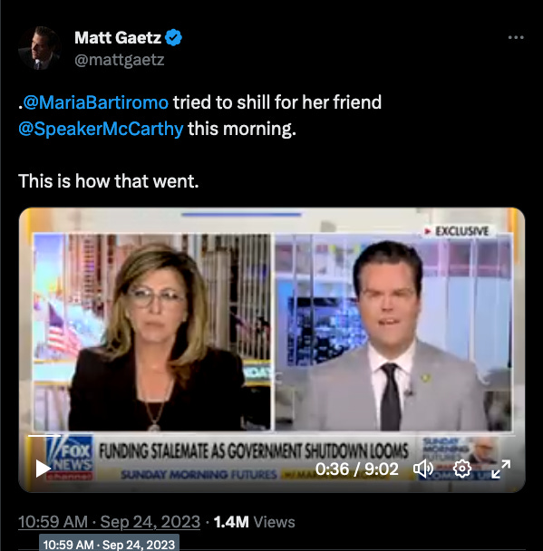 The Right Way is the #1 conservative blog on Substack — recommended by over 220 other Substack authors! Get 20% off for 1 year This should be required viewing for every Republican voter: a short interview between Fox News host Maria Bartiromo and Rep. Matt Gaetz in which (in a mere 8 minutes) Gaetz explains […]