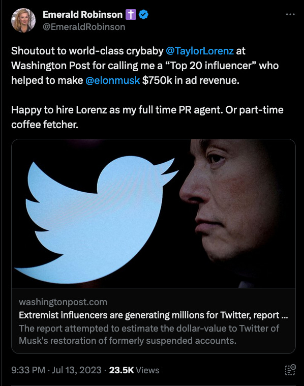 Emerald Robinson - Aug 5th 2023 12:25pm EDT The Right Way is the #1 conservative blog on Substack — recommended by over 205 other Substack authors. Get 20% off for 1 year Last year, I got a letter from a reporter at the Washington Post — so it wasn’t a request from an actual journalist. The proper phrase would be fake reporter or […]