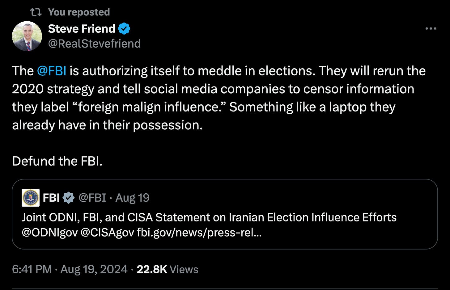 Emerald Robinson - Aug 2nd 2024 10:14am EDT The Right Way is the #1 conservative blog on Substack — recommended by over 274 other Substack authors! Get 20% off forever The FBI and CISA (the cybersecurity unit inside DHS) have issued a joint statement just 94 days before the 2024 election. Are they telling you that America’s voting systems are secure and ready […]