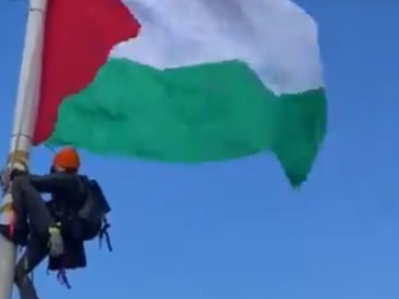 Frontline News - Dec 8th 2023 6:46am EST PLO flag hoisted above Golden Gate Bridge