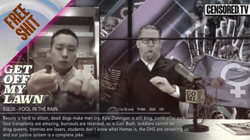 Censored TV With Gavin McInnes - Nov 10th 2023 4:48pm ESTBeauty is hard to attain, dead dogs make men cry, Kyle Dunnigan is still king, cumbrellas suck, face transplants are amazing, burnouts are retarded, so is Cori Bush, toddlers cannot be drag queens, trannies are losers, students don’t know what Hamas is, the DHS are censoring us, and our justice system is a complete […]
