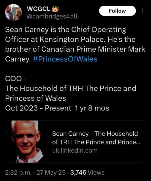 Please send links and comments to [email protected] Mark Carney is the ultimate Insider. His family is part of the Illuminati establishment. Yes, Mark’s brother Sean Carney works for King Charles as the Chief Operating Officer at Kensington Palace, managing the household of Prince William, the heir to the British throne.- https://www.linkedin.com/in/sean-carney-a4a6ab133/ While Mark Carney builds […]