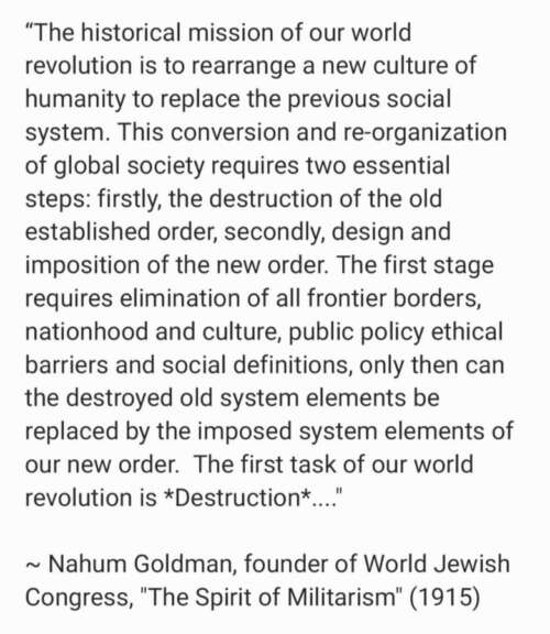 (Left, Quote from World Jewish Congress Founder Nahum Goldman 1895-1982- Forgive me for posting this again but people these days have short attention spans and even shorter memories.) We can’t defend ourselves if we can’t even name the enemy. We face an occult force. Organized Jewry and its minion Freemasonry, are dedicated to destroying civilization. […]
