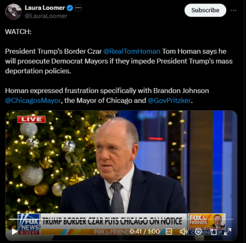 Incoming Border Czar Tom Homan promised to prosecute any elected Democrat who illegally obstructs President Trump’s mass deportations. Homan’s remarks referenced Chicago Mayor Brandon Johnson and Illinois Governor JB Pritzker, who have been outspoken about their willingness to obstruct President Trump’s secure border policies. Elected Democrats at all levels are planning to legally and illegally […]