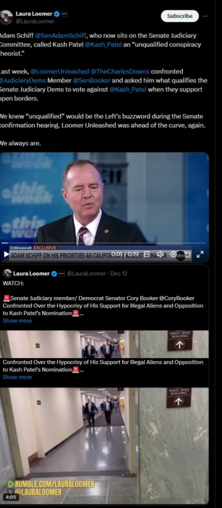 The Senate Democrats have been ranting to the American people about Kash Patel’s lack of “qualifications” to serve as FBI Director. Some of the loudest voices amongst the Senate Democrats on this subject come from the Senate Judiciary Democrats. As he walked into the Senate Democrats Committee Hearing, Loomer Unleashed confronted California Democrat Senator Adam Schiff about what […]