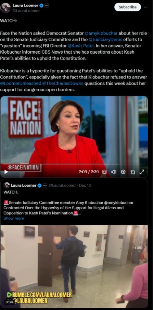 On Sunday, Minnesota Democrat Senator Amy Klobuchar attacked President Trump’s FBI Director Nominee Kash Patel by inferring he would not be committed to the Constitution and America’s national security. Klobuchar sits on the Senate Democrat Judiciary Committee. It is hypocritical of Klobuchar to attack Patel’s commitment to national security and the Constitution when Klobuchar and […]