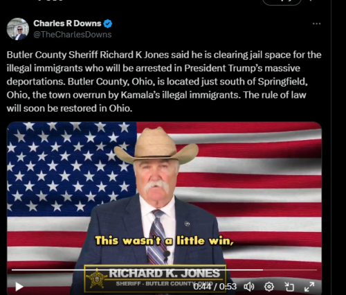 Butler County Ohio Sheriff Richard K. Jones released a video supporting President Trump and Incoming Border Czar Tom Homan’s massive deportation policy. Butler County, Ohio, is located about 50 miles or so south of Springfield, Ohio, a town of 50,000 that has been overrun by 30,000 of Kamala Harris’s illegal immigrants. The Butler County Sheriff’s […]