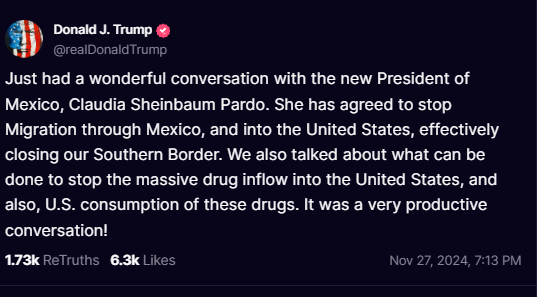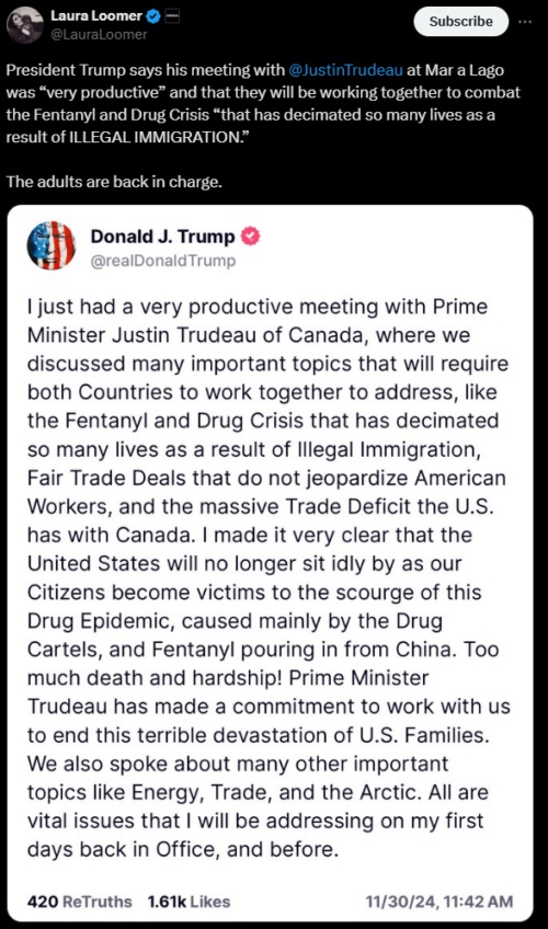 President Trump was hard at work over Thanksgiving weekend to ensure his campaign promises of implementing policies that secure the borders and stop the flow of fentanyl are quickly enacted. Canadian Prime Minister Justin Trudeau was seen entering Mar-a-Lago Friday night for a meeting with Trump. Last week, Trump announced he would be implementing tariffs […]
