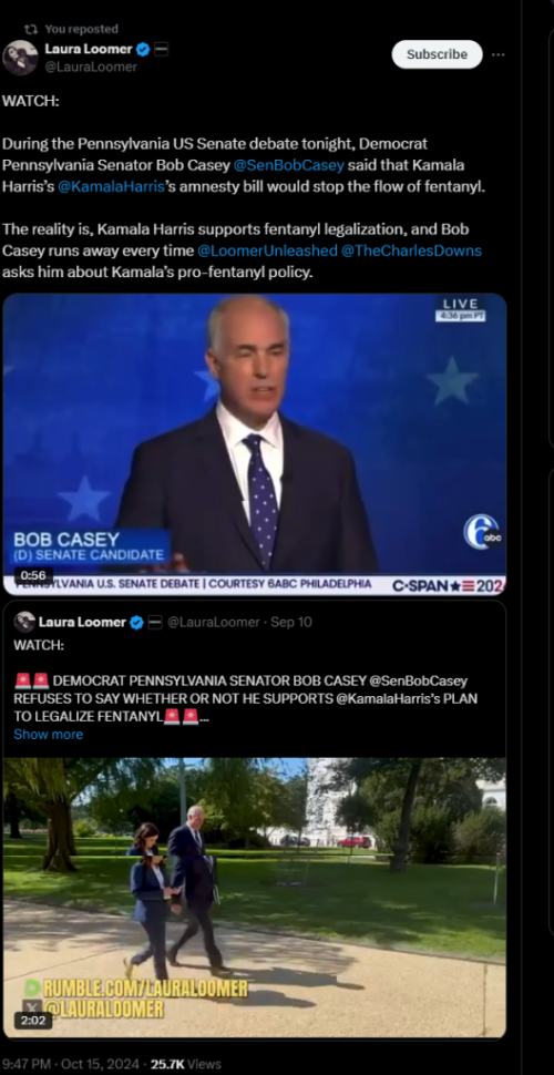 During the Pennsylvania United States Senate Debate on Tuesday night, Senator Bob Casey lied to voters again about the Left’s border and fentanyl policies. During the debate, Casey stated, “Border security is critically important. We have to secure our border. That means hiring more border patrol. That means investing in technology that will stop fentanyl […]