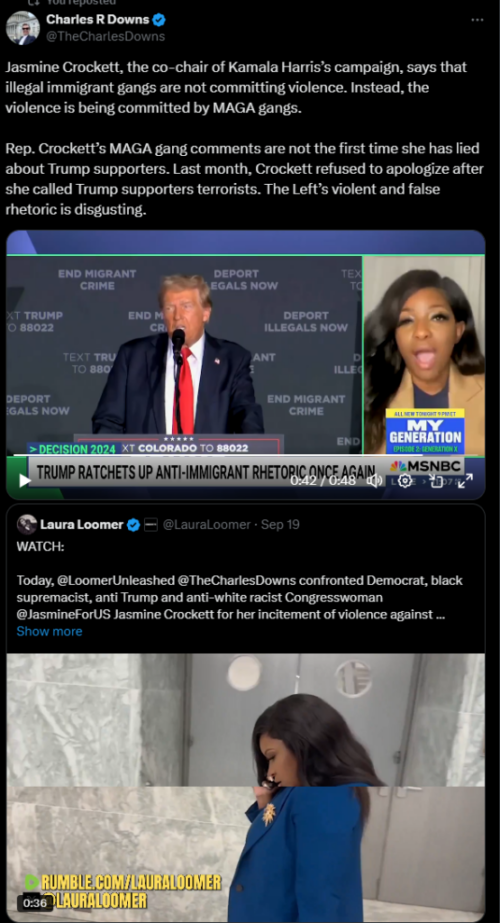 The Kamala Harris campaign continues lying to voters about their policy position on the critical issue of the border. Kamala Harris Presidential Campaign Co-Chair Jasmine Crockett recently stated on MSNBC that she agreed with President Trump that gangs have taken over America. However, Crockett insisted that it was “MAGA Gangs” taking over America’s towns like […]
