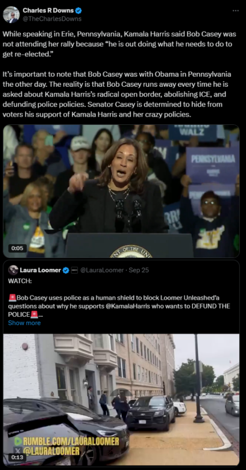 Pennsylvania United States Senator Bob Casey, who faces reelection in November, skipped Kamala Harris’s Erie, Pennsylvania, rally on Monday. Kamala Harris told her Erie, Pennsylvania crowd that Bob Casey was not in attendance because “he is out doing what he needs to do to get re-elected.” Kamala’s statement about Casey skipping her Pennsylvania rally is […]