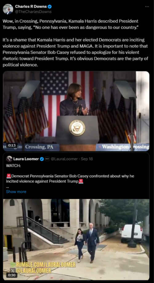 On Wednesday, Kamala Harris gave a speech in Crossing, Pennsylvania, centered around the “idea” of “Country Over Party.” During her speech, Kamala Harris read a quote from Mark Milley stating that President Trump is “Dangerous To Our Country.” Kamala Harris and her elected Democrats have intensified their violent rhetoric toward President Trump and his supporters. […]