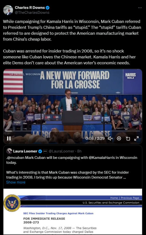 Despite polling across the board showing the border being one of the top issues heading into the election, Kamala Harris avoided speaking about her border policies during rallies in Wisconsin on Thursday. Kamala’s first event took place in La Crosse and was attended by Mark Cuban, who criticized Trump’s tariffs in his speech by referring […]