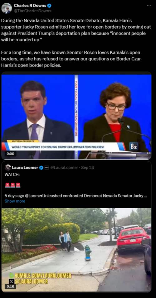 Kamala Harris will be very happy to learn that Nevada Senator Jacky Rosen has fully embraced America’s Border Czar’s open border policies. During Thursday’s Nevada United States Senate debate, Rosen came out against President Trump’s plan to massively deport illegal immigrant gang members because “innocent people may get rounded up.” Last week, President Trump announced […]