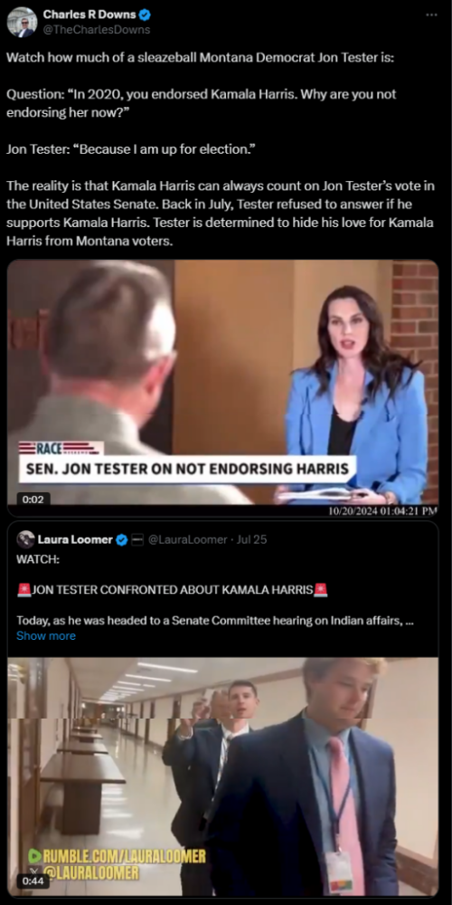 Montana United States Senator Jon Tester loves having his cake and eating it too. On Monday, Senator Tester informed local Montana media that he is not endorsing Kamala Harris because he is “up for election.” Tester has long supported Kamala Harris, endorsing her as Joe Biden’s VP in 2020. Tester also recruited Kamala Harris to […]