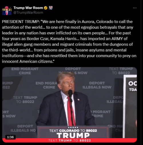On Friday, President Trump visited Aurora, Colorado, to give a speech highlighting the disastrous effects that Border Czar Kamala Harris’s open border policies have had on cities and towns across the United States. The Venezuelan gang Tren de Aragua, also known as “TDA,” recently took over an apartment complex in Aurora. Sadly, Aurora is not […]
