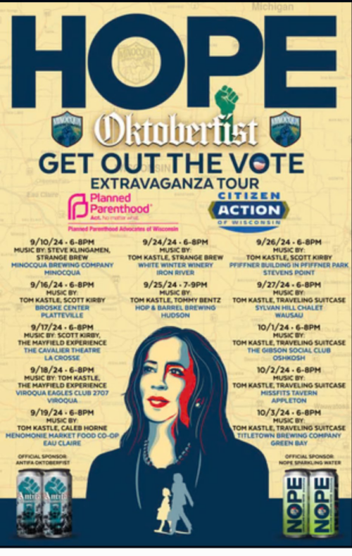 A pro-Antifa brewing company called Minocqua Brewing Company has partnered with Planned Parenthood and Citizens Action to organize a get-out-to-vote tour for Kamala Harris in Wisconsin, which starts on September 10th. Minocqua Brewing Company, Planned Parenthood, and Citizen Action Wisconsin’s Kamala Harris GOTV tour is called “Hope” and stops at multiple Wisconsin breweries, bars, and […]