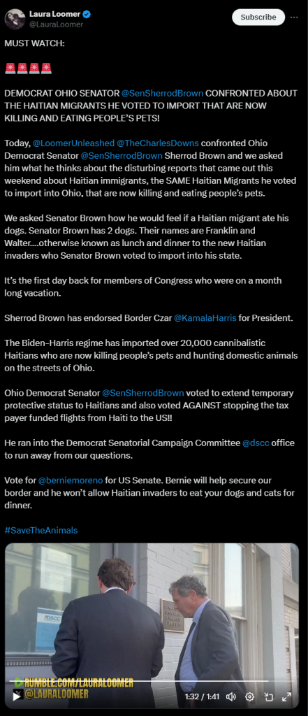 Little has changed since the United States Congress returned from its month-long August Recess. Senate Democrats are back to running away from Loomer Unleashed’s questions on catastrophes resulting from Border Czar Harris’s open borders. On Monday, Ohio United States Senator Sherrod Brown, who faces reelection in November, ran into the Democrat Senatorial Campaign Committee to […]