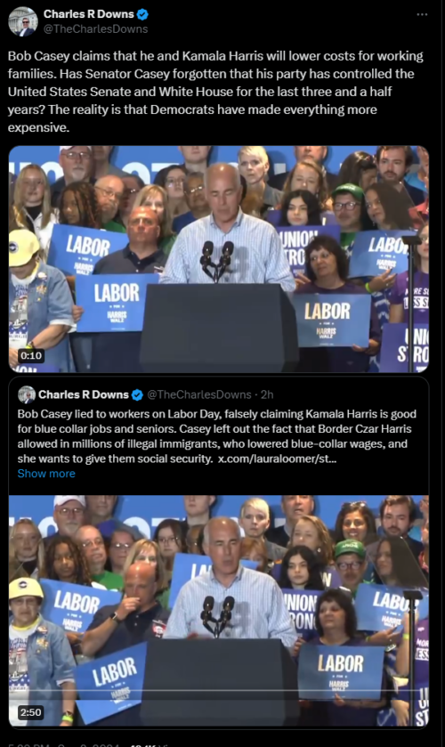 There is nothing more unAmerican than lying to voters on Labor Day. On Monday, Kamala Harris, Joe Biden, and Pennsylvania United States Senator Bob Casey, who faces reelection in November, lied to Pennsylvania voters on the Left’s policies regarding blue-collar workers during an event in Pittsburgh, Pennsylvania. Bob Casey was the first to speak, lying […]