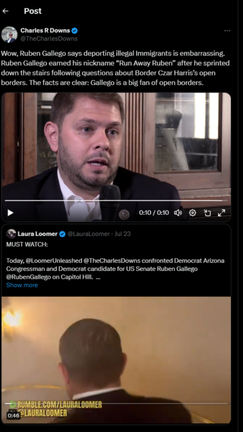 Arizona Senate Candidate Ruben Gallego just can’t help himself. On Thursday, Gallego embarrassed himself again in a likely failed attempt to avoid another confrontation by Loomer Unleashed. Gallego told fantastic lies about an X post Laura Loomer wrote on Wednesday. Laura Loomer’s Wednesday X post simply highlighted the fact that Wednesday’s Georgia school shooter had […]