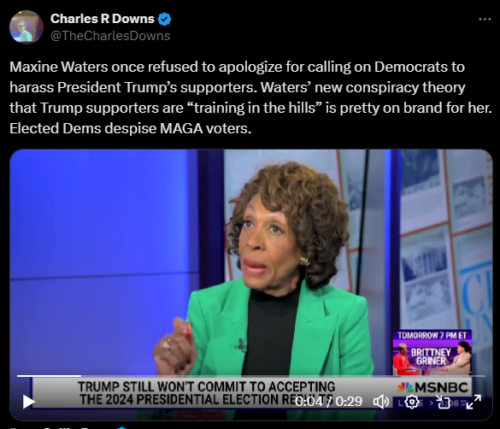 California Representative Maxine Waters went on another unhinged rant. Rep Waters told MSNBC that she wants the Biden DOJ to disclose its plan to protect America from Trump supporters ” training up in the hills.” During Trump’s first term, Waters infamously called on Democrats to harass supporters of President Trump. In March, Waters refused to […]
