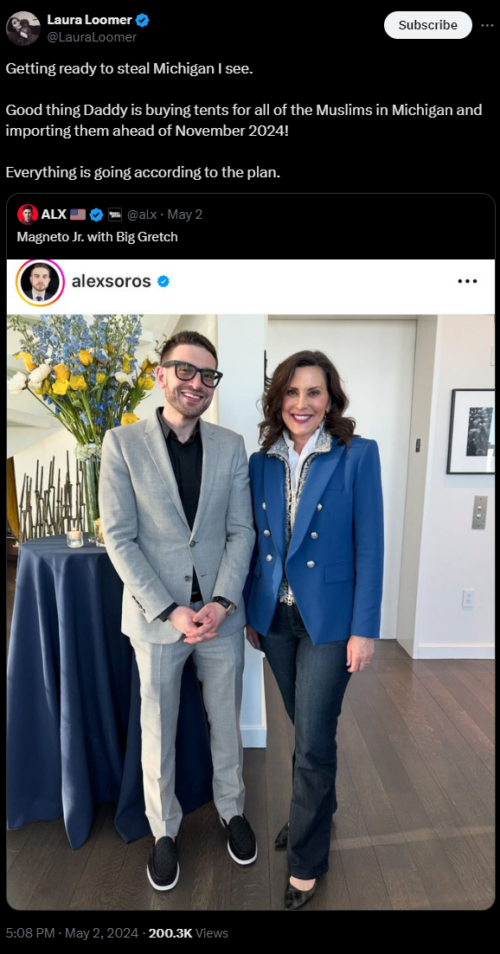 Alex Soros, the son of George Soros, continued his election swing state tour on Thursday, meeting with Michigan Governor Gretchen Whitmer. The Soros family has been heavily funding Elissa Slotkin, a Michigan congress member running for the open Michigan United States Senate seat. Loomer Unleashed recently highlighted that Alex Soros also met with Governor Josh […]