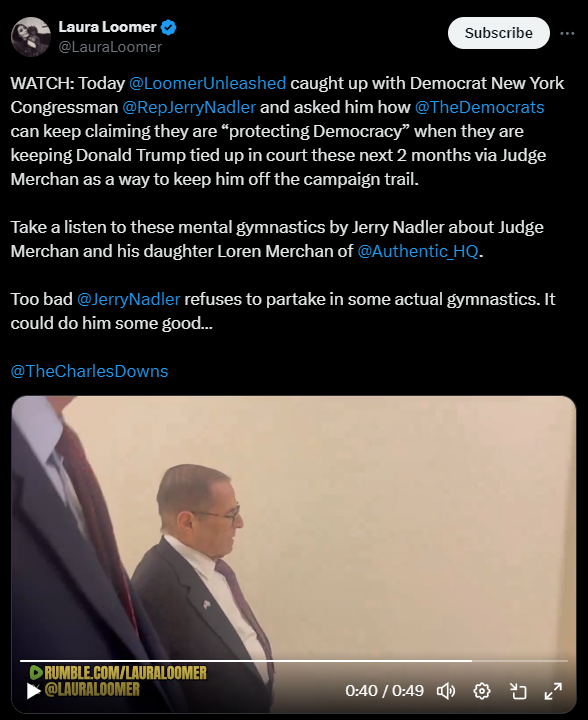 Powerful New York City Democrat Jerry Nadler was cheering on Judge Merchan’s corrupt trial of President Trump from Capitol Hill on Tuesday. Nadler told Loomer Unleashed that Judge Merchan’s daughter receiving payment from the Biden campaign was “irrelevant.” Loomer exclusively reported that Judge Merchan’s daughter, Loren, is the partner and part-owner of Authentic Campaigns, a firm whose “featured client” is […]