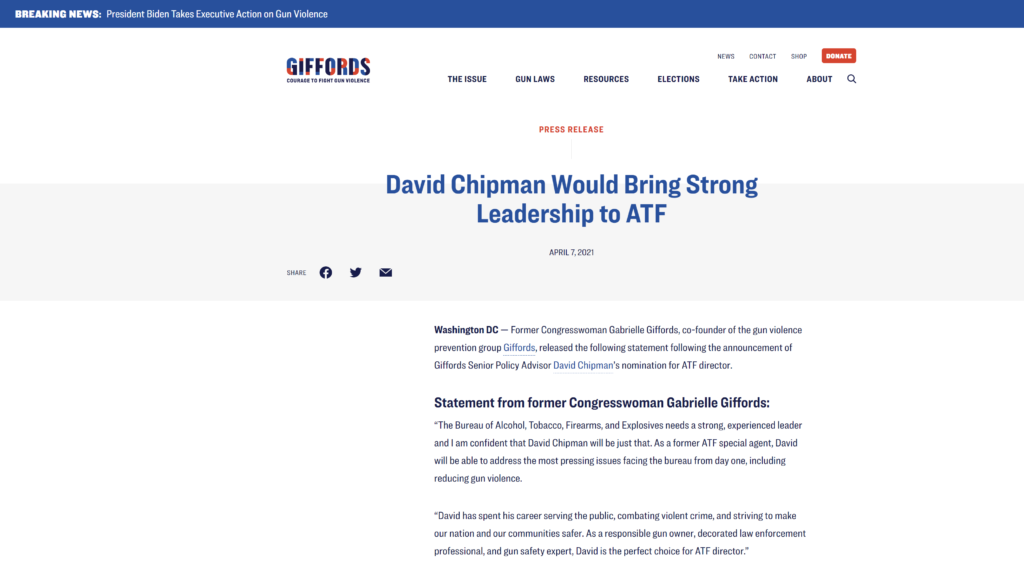 Laura Loomer - Apr 9th 2021 10:05am EDT The Associated Press, along with Washington Post recently reported that David Chipman, former member of Mayors Against Illegal Guns, and Senior Policy Advisor for the gun control group Giffords, is set to be nominated by President Joe Biden as director of the Justice Department’s Alcohol, Tobacco, Firearms and Explosives (ATF) agency. Chipman must be confirmed […]