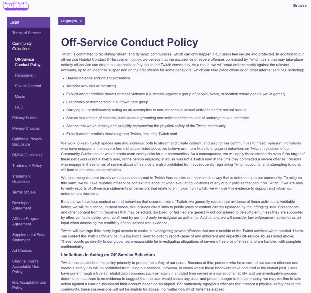 Twitch To Punish Users With ‘Severe’ or ‘Egregious’ Misconduct In Real-Life, Off Of The Platform