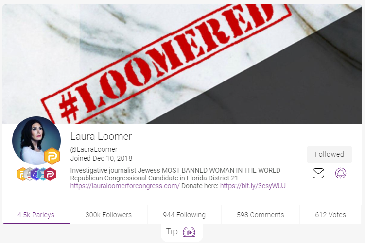 Laura Loomer Exceeds Pre-Ban Twitter Following on Parler With 300k Followers