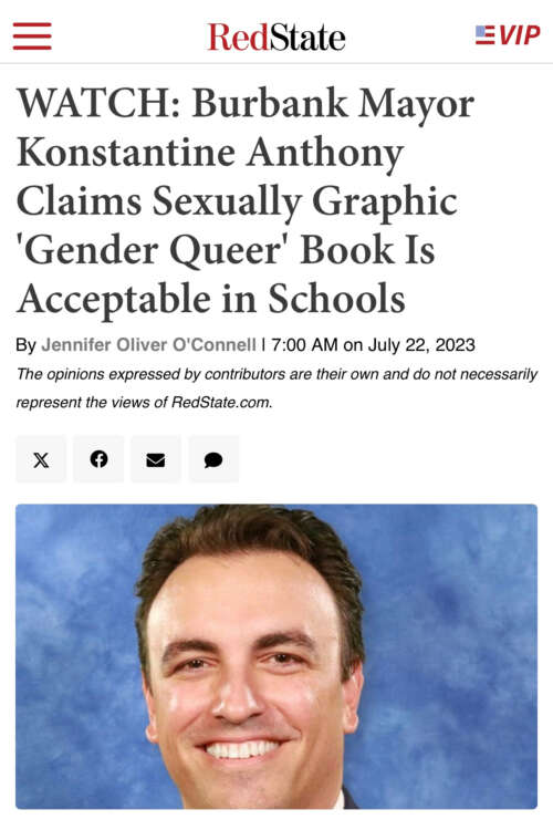 Libs of TikTok - Sep 11th 2023 11:11pm EDTWow. Here’s #MayorSpanky, the Mayor of Burbank, CA who received a spanking from a drag queen at an event that was open to children- defending books like “Gender Queer” in schools, saying it isn’t sexualized or graphic. Why does @KonstantineinCA want kids reading porn in school? pic.twitter.com/U49EUV4CIN — Libs of TikTok (@libsoftiktok) September 12, 2023