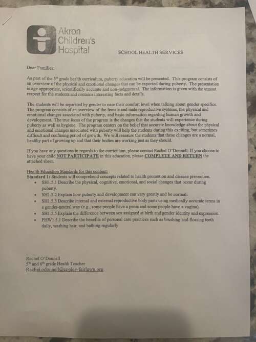 Libs of TikTok - Mar 7th 2023 3:07pm EST Parents of Copley-Fairlawn Middle Schoolers were alarmed to find out their children were set to be taught about gender identity as part of their fifth-grade health curriculum. In a letter sent to parents, Ms. O’Donnell, a health teacher at Copley-Fairlawn Middle School, introduced the puberty education that fifth graders would receive. She wrote that the lessons […]