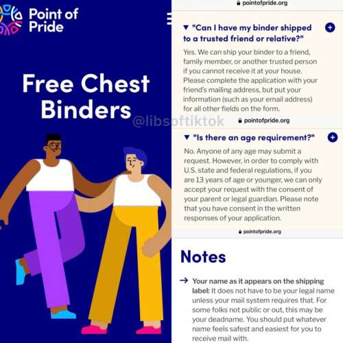 Libs of TikTok - Jan 28th 2023 1:46pm EST Libs of Tik Tok on Gab: ‘This organization directs minors on how to receive chest binders behind their parents’ backs. Chest binding can have negative effects including rib fractures, infections, and chronic back pain.’