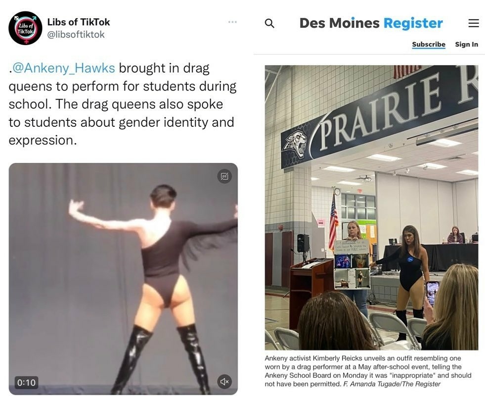 Libs of Tik Tok on Gab: ‘Incredible! To protest the drag show at her child’s school district, mom shows up to board meeting this week in same outfit that drag queen wore.’