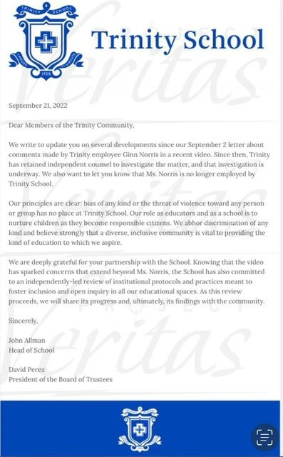 Libs of Tik Tok on Gab: ‘NY Teacher who bragged about sneaking political agenda into the classroom and demonized white students is “no longer employed by Trinity School” https://twitter.com/JackPosobiec/status/1565431877460189189?s=20&t=t8u3R-KP5S1i1iX6h3TOFA’