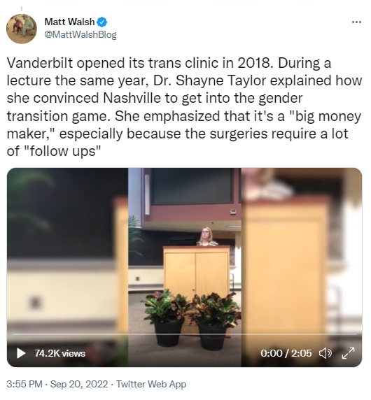 Libs of Tik Tok on Gab: ‘“Bottom surgeries.. these are huge money makers” – trans clinic doctor at Vanderbilt Health https://twitter.com/MattWalshBlog/status/1572313523232931840?s=20&t=1rif-JkHjNHsaUGIhSdwPQ’
