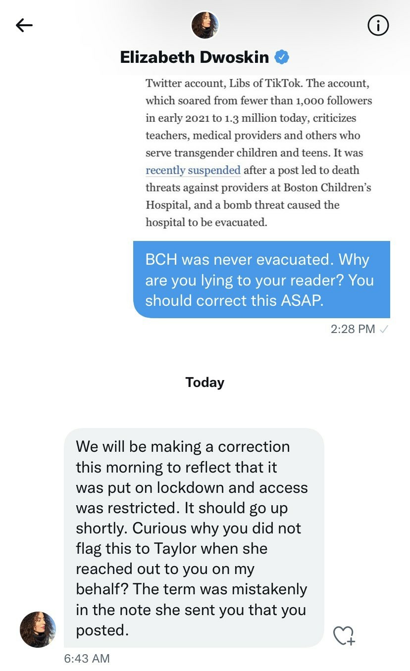 Libs of Tik Tok on Gab: ‘WaPo published an article claiming a hospital was evacuated. No hospital was evacuated. When I questioned them about this lie they blamed me for not doing their work for them. You can’t make this up. Journalism!’