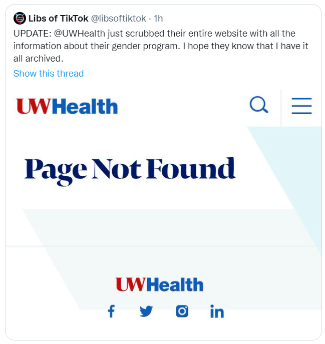 Libs of Tik Tok on Gab: ‘UW Health put out this guide specifically “for under age 18” on how to prepare for a “gender affirming” double mastectomy. Just remember that the fact-checkers told us that this isn’t happening.’