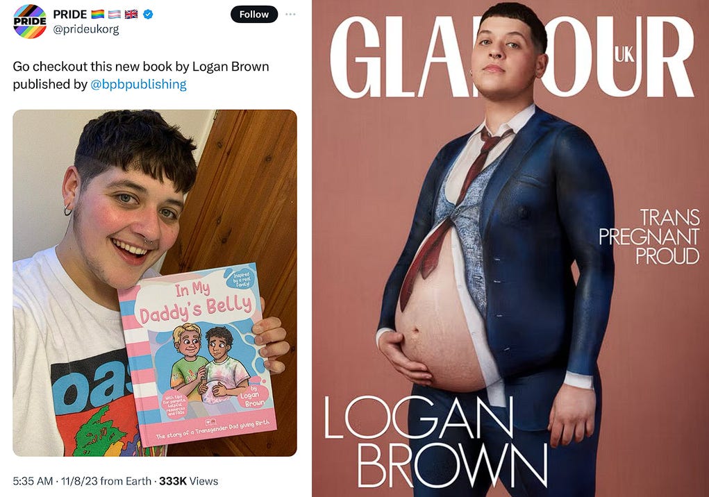 Libs of TikTok - Nov 9th 2023 9:53am EST WOMAN WRITES A CHILDREN’S BOOK ABOUT HOW MEN CAN GIVE BIRTH Logan Brown, a woman who identifies as a man, authored a new children’s book called “In My Daddy’s Belly.” This book teaches kids that men can get pregnant and give birth. Logan was the same trans activist who appeared pregnant on the cover of […]