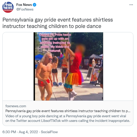 Libs of Tik Tok on Gab: ‘I wish there was a word to describe this https://www.foxnews.com/us/pennsylvania-gay-pride-event-features-shirtless-instructor-teaching-children-pole-dance?intcmp=tw_fnc’
