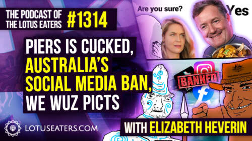 Lotus Eaters ( With Sargon Of Akkad) - Dec 10th 2025 8:00am EST Harry, Luca and Elizabeth Heverin to discuss Piers Morgan being unbelievably cucked, the new social media ban for Australians under 16, and the erasure of the Picts.Reading List