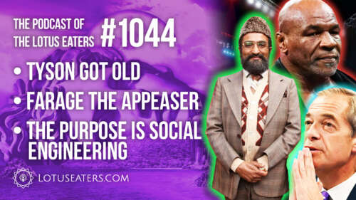 Lotus Eaters ( With Sargon Of Akkad) - Nov 18th 2024 8:00am EST Carl, Dan, and Stelios discuss the Mike Tyson/Jake Paul fight, how Farage has folded on yet another important issue, and how the state will engineer you to be woke. Reading List