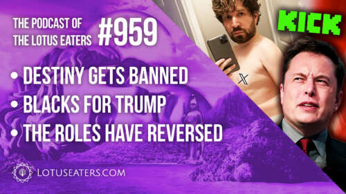 Lotus Eaters ( With Sargon Of Akkad) - Jul 18th 2024 9:00am EDT Harry and Josh discuss Destiny going too far, blacks for Trump, and how the roles have finally reversed and this is a terrible thing apparently. Reading List