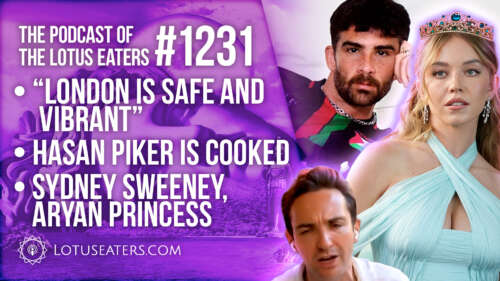 Lotus Eaters ( With Sargon Of Akkad) - Aug 15th 2025 9:00am EDT Carl, Harry, and Nick Dixon discuss how London is a very safe and vibrant place to be, how Hasan piker is cooked, and how Sydney Sweeney is a Aryan princes. Islander #4 is out! Buy it here: https://shop.lotuseaters.comReading List