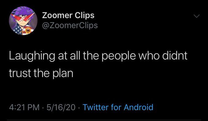 Occidental Dissent - May 14th 2020 7:58pm EDTWhat is the Trump cult going to do now? GLORIOUS LEADER has said the military will vaccinate the public. Note: If Bill Gates said he had a vaccine, do you doubt for a second that Trump would embrace it to “get back to work”?