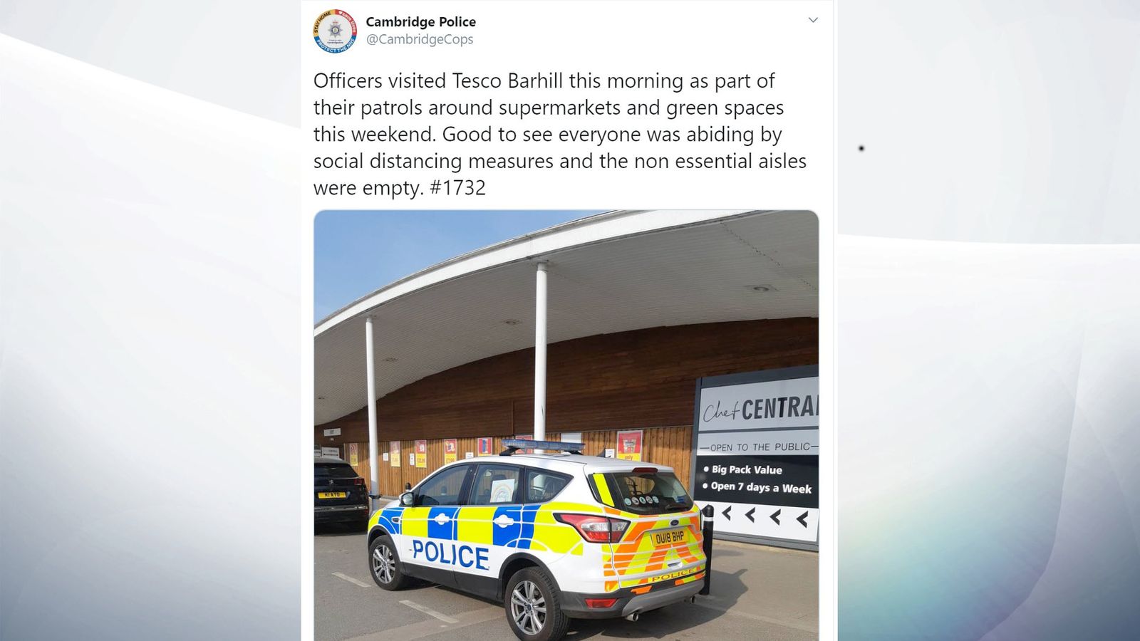 Paul Joseph Watson - Apr 10th 2020 11:21am EDT Downing Street has been forced to clarify that officers won’t be checking what people buy in supermarkets after yet another tweet by a police force that doesn’t understand the coronavirus lockdown laws. The controversy began when Cambridge Police tweeted that they were monitoring “non-essential” supermarket aisles in a local branch of Tesco to make sure […]