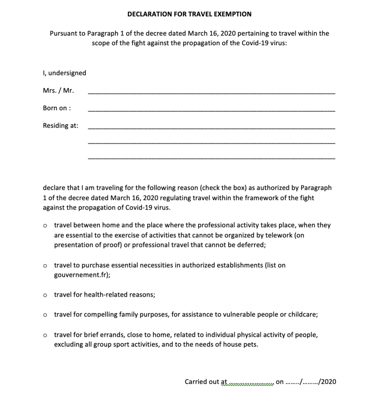 Martial Law France: Citizens Have to Fill Out Form Every Time They Leave the Home