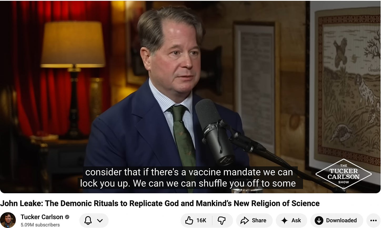 Tucker Carlson & John Leake Talk about Vaccine Religion
